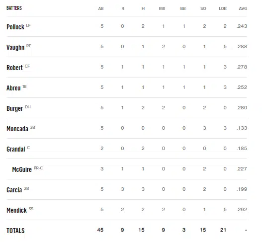 Leury Garcia, Danny Mendick, AJ Pollock: combined 7-for-15, 5 R, 3 RBI