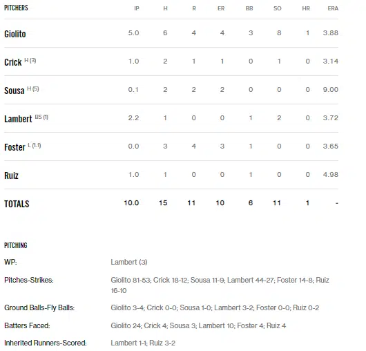 Lucas Giolito: 5.0 IP, 8 K, 6 H, 3 BB, 4 ER