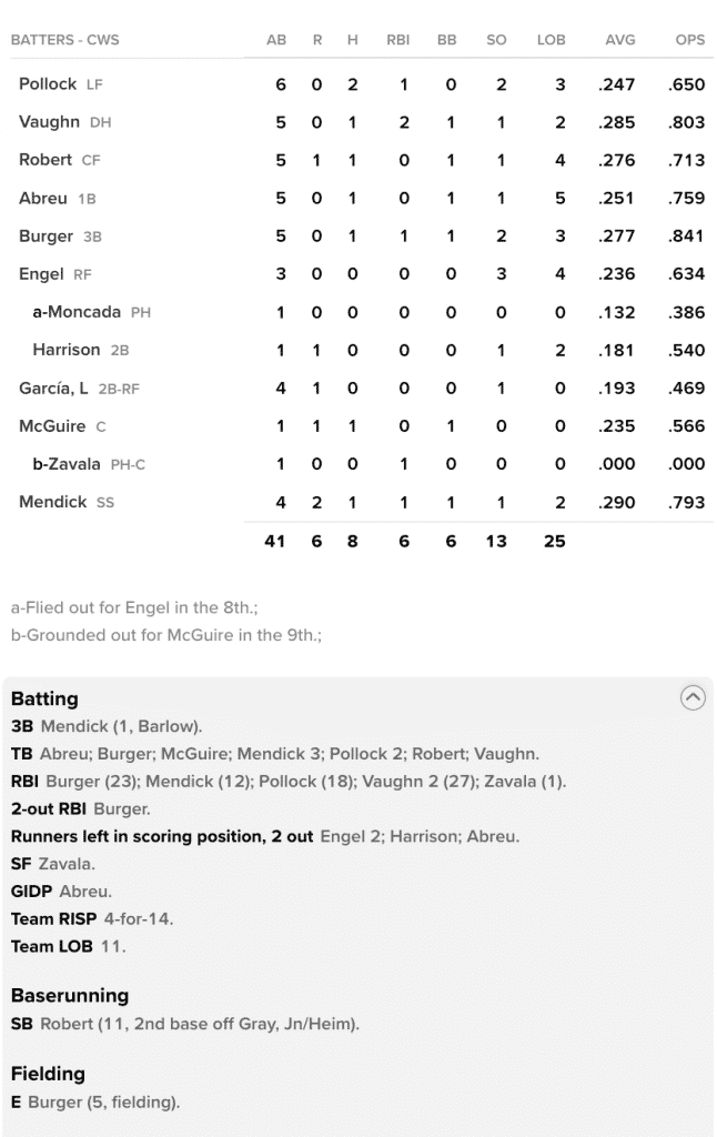 White Sox Scoring Recap:
