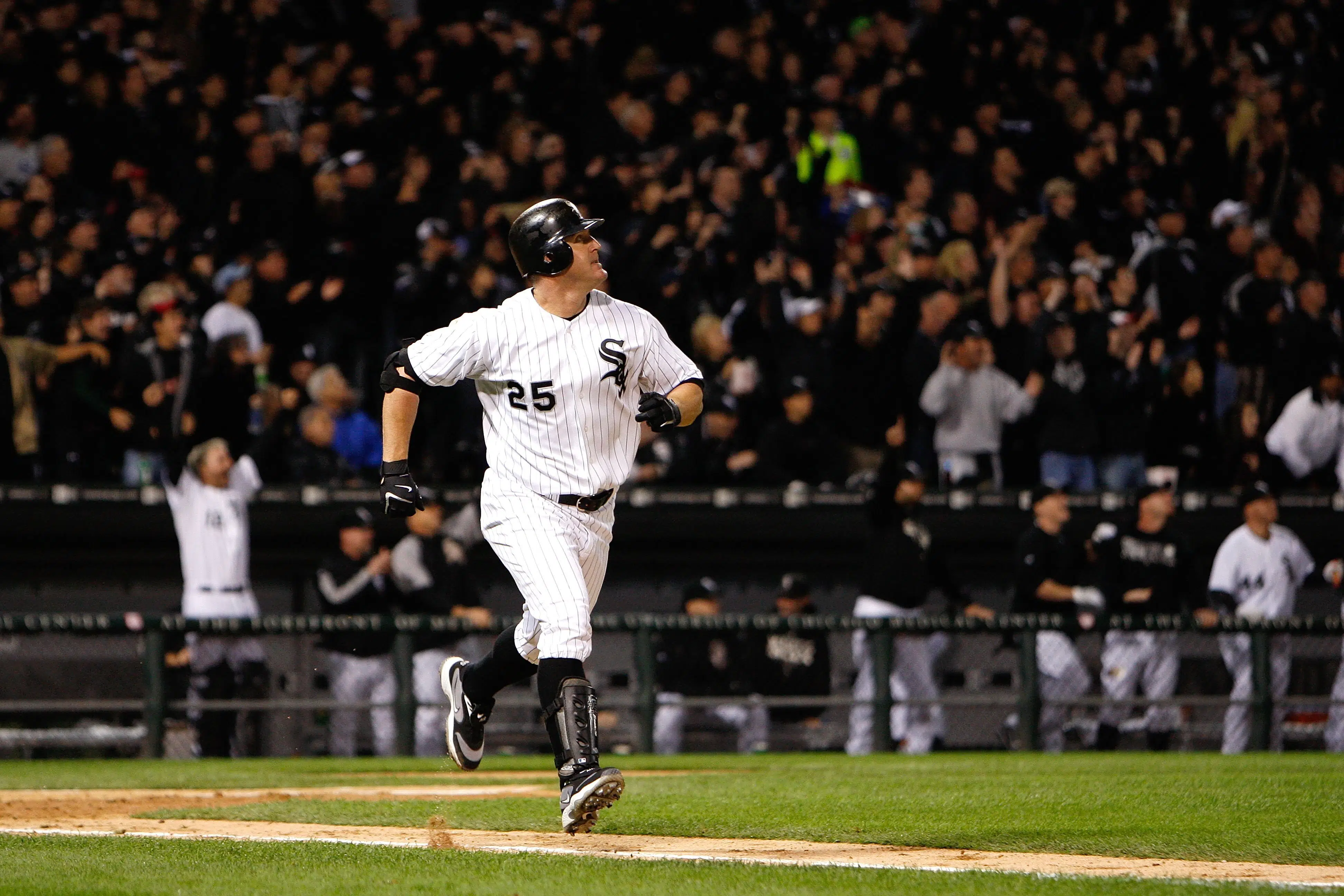 I knew from the crack of the bat it would be gone, so with the game knotted at 0-0, I watched the reaction of the Sox’s dugout as Thome circled the bases. Only later did I find out it had landed in the camera area.