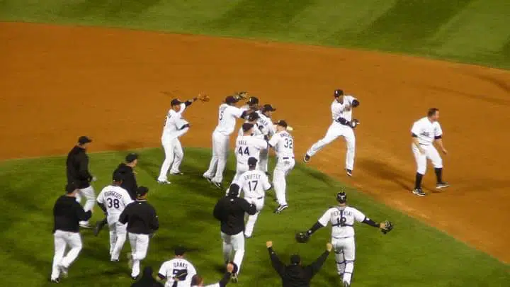 Jason Hanis: “Sox fan from Michigan. I remember watching the night before with my laptop open to stubhub when they were playing the Tigers and Ramirez hit the homer to make the game possible. Purchased front row tickets behind the Twins dugout. When I got to my seats, I couldn’t believe the atmosphere. Sent chills all over. The greatest sporting experience I’ve ever had in my life. Electric start to finish. I remember hiding beers under my seat because it was so close I thought we may see a lot of extras!”