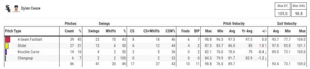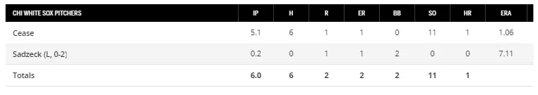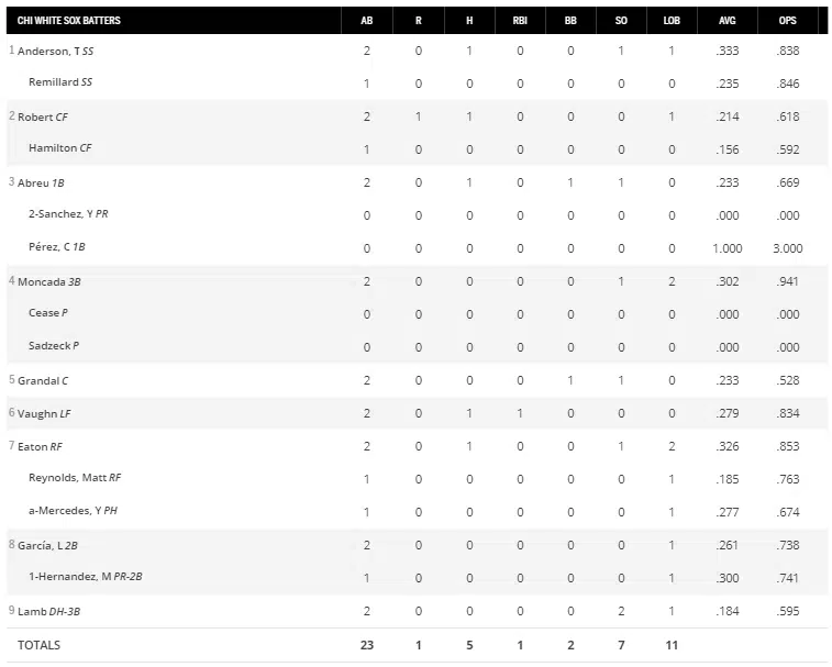 Not much to speak about here, as the White Sox could only muster one run on five hits. Luis Robert, Tim Anderson, Jose Abreu, Andrew Vaughn, and Adam Eaton provided the only hits in the game, while Vaughn’s sacrifice fly was the only run.