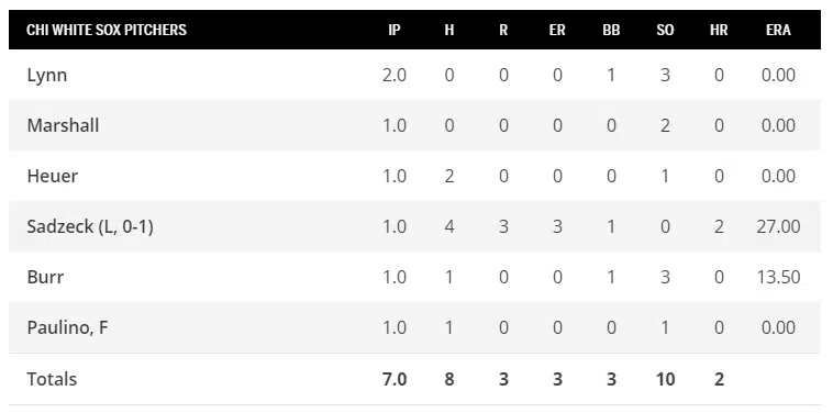 As said above, Lance Lynn opened the game for the Sox and pitched two scoreless innings with three strikeouts.