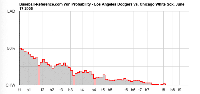 Mark Buehrle’s complete game shutout earned him a very high WPA of 31.8. For White Sox hitters, Scott Podsednik‘s 1-for-3 run effort earned him a 16.3 points.