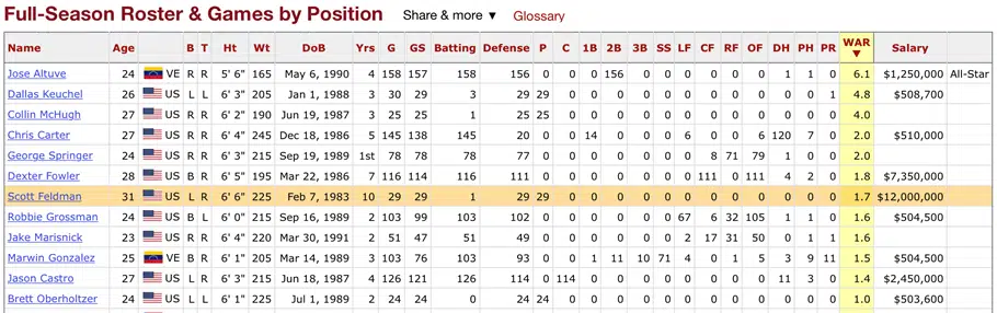 Figure 1 – 2014 Houston Astros players above 1.0 bWAR