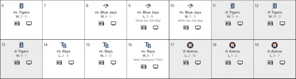 The good news is that stretches like these happen, and the Sox have a nice, easier schedule coming up to get back on track. Let’s hope they get there.