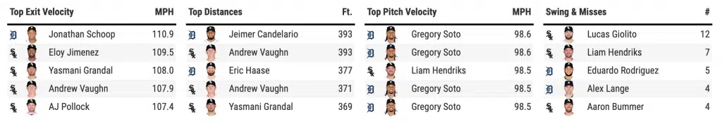 On the offense, the White Sox continued to hit well against LHP, scoring all four runs against Detroit southpaws. Every batter 1-9 was working the counts early in the game, which led to an early exit for Detroit SP Eduardo Rodriguez, which almost feels like a detriment to the White Sox in hindsight. Luis Robert, Eloy Jimenez, AJ Pollock, and Andrew Vaughn all turned in RBIs on the afternoon, with Vaughn’s aforementioned homer being the only ball that left the park for the White Sox.