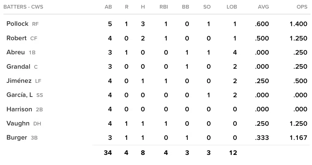 Though the play to end the game was less than ideal from Pollock in right, the new White Sox RF had himself a nice game at the plate. He hit leadoff and went 3-for-5, including an RBI, in the contest.