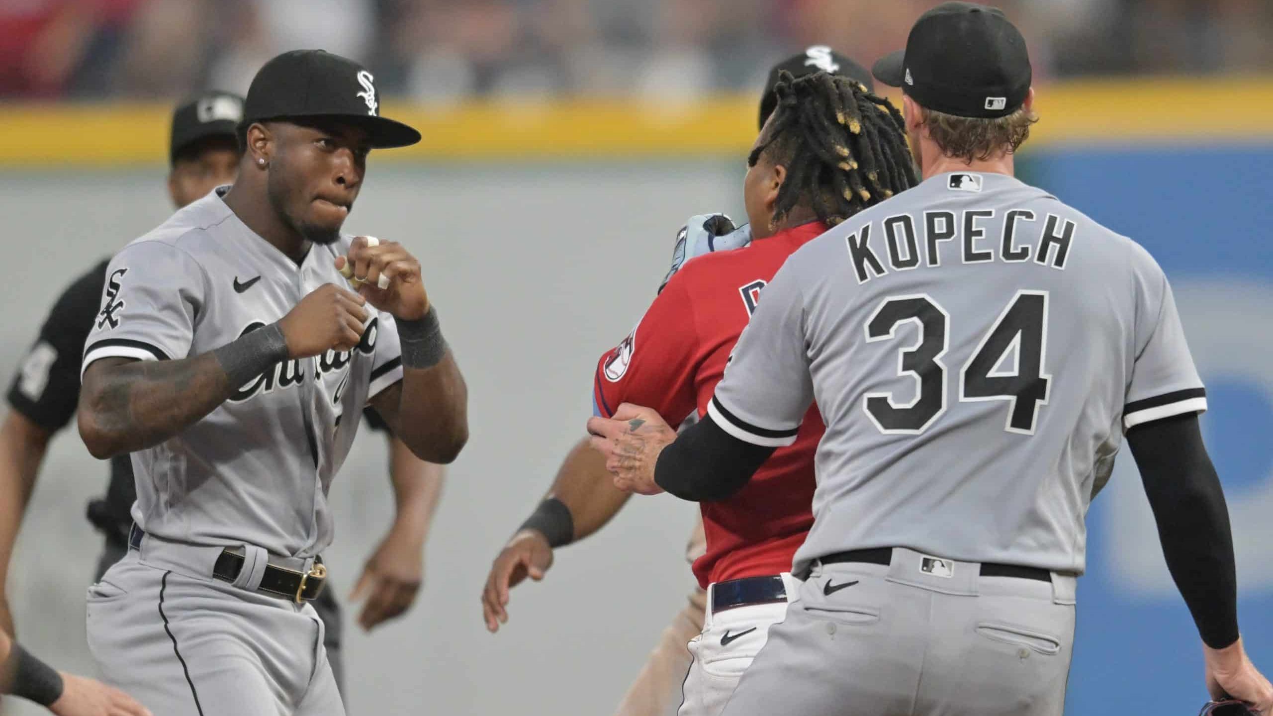 The incident in question occurred during the sixth inning of Saturday night’s White Sox-Guardians game. By the looks of it, Cleveland infielder Jose Ramirez didn’t seem to be pleased with how Anderson tagged him after hitting an RBI double. The two exchanged words and Ramirez can be seen pointing in Anderson’s face. Things escalated very quickly as the two squared up and traded several blows. Though Anderson landed the first few, Ramirez responded by knocking TA to the ground.