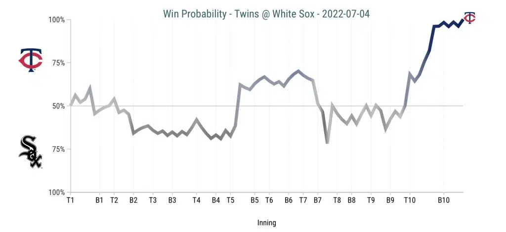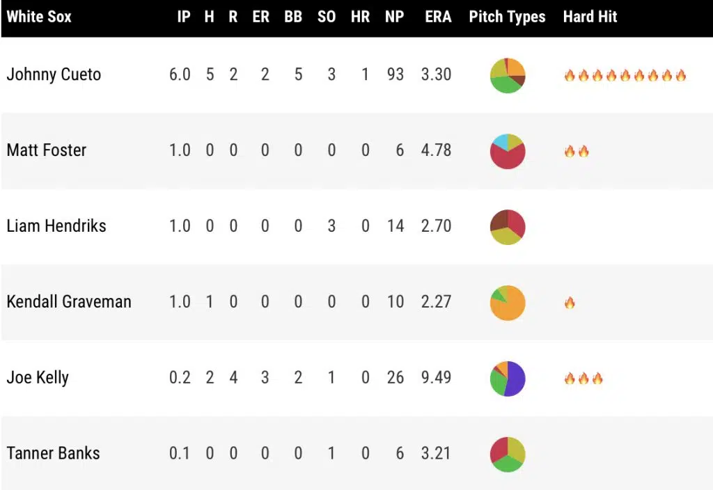 Johnny Cueto gave the Sox all he could. He went six innings of two-run ball, his only mistake coming on the two-run homer to Byron Buxton. He recorded three punch-outs in his six innings of work – once again, he gives you all you can ask for in a fifth starter. Matt Foster came on for the seventh and did so without allowing a run. Fresh off the IL Liam Hendriks was asked to get the three biggest outs of the game at the time in the eighth inning with Carlos Correa, Max Kepler, and Jorge Polanco coming to the plate. Hendriks struck out the side, navigating flawlessly through 3-4-5 in the Twins lineup. Kendall Gravman sent it to the tenth where Joe Kelly took over. It all went haywire from there. Joe Kelly only recording two outs in the tenth , struggling with command the entire time. He walked two batters, and by the time it was all said and done, four runs had crossed the plate and the Twins were up 6-2.
