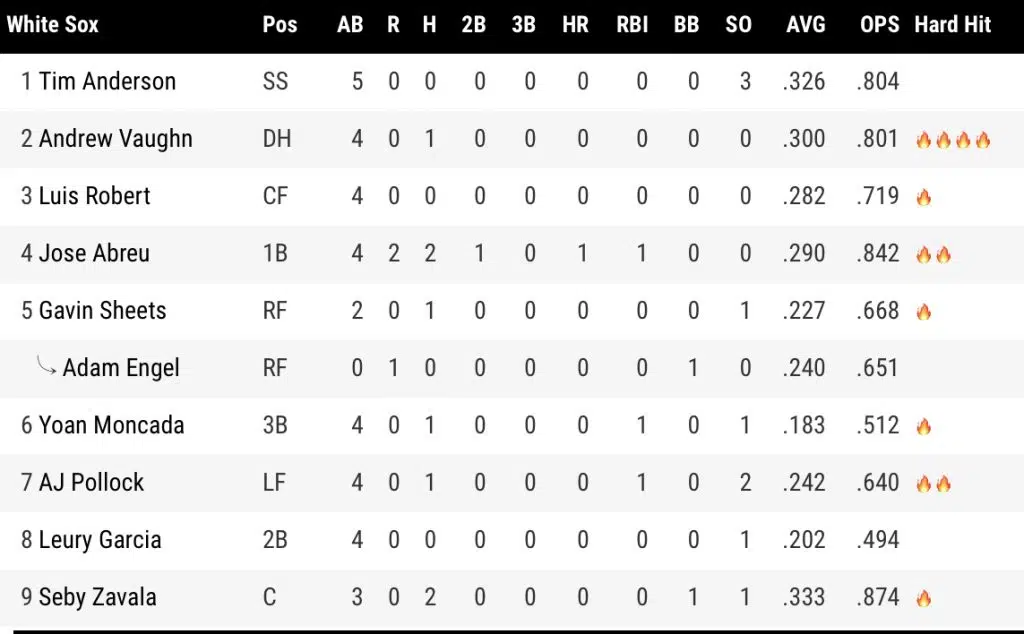 White Sox Scoring Recap
