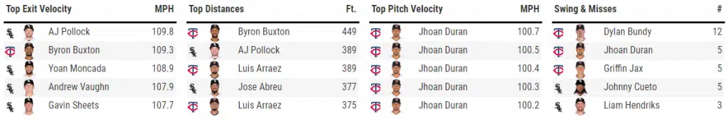 Jose Abreu was majority of the offense today. Abreu led off the second with a long blast to right-field. Then in the seventh, he led it off with a double before coming around to score on a Yoan Moncada base hit. This was when the biggest blunder and momentum-changer of the game occurred. With A.J. Pollock up and no outs in the seventh with runners and first and second, Pollock hit a deep fly ball that took Twins centerfielder Byron Buxton to the track. Buxton would make a nice running play, but both baserunners – Adam Engel and Yoan Moncada – failed to tag up, turning a flyout into an inning-ending 8-5 triple play – the first of its kind in major league baseball history. The Sox would score one run in the tenth via an A.J. Pollock RBI single, but it was far from enough in a game that felt given away by the White Sox.