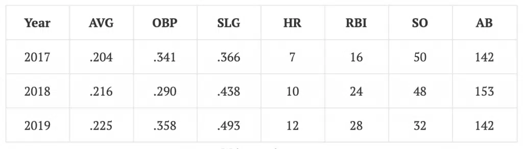 Based on the past three seasons, it appears the next 20 games will be more of the same for Encarnacion, with the potential for an increase in power. Of course, anything can happen in 2020, but don’t expect Encarnacion to have a dramatic turnaround in the second half of the season.