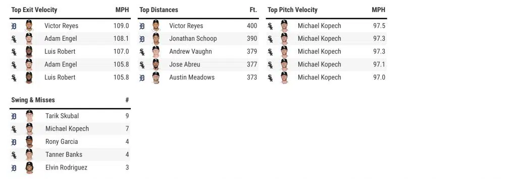 Luis Robert, in only his third game of the year, shows what he can do. He stole a bag in this one, his second stolen base of the year, and also tallied 3 hits. A healthy Luis Robert for a full 162 has MVP written all over it!