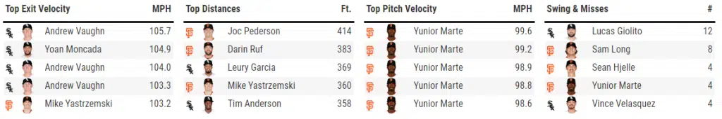 For as rough of a season as it’s been for Leury Garcia, it appears he may have found something over the last few games. With a three-hit performance today, he ended this series with the Giants 5-for-11, including the go-ahead single in Friday’s 1-0 victory.