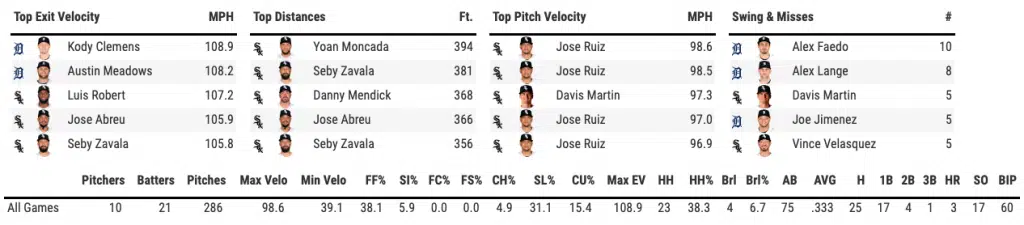 The entire starting lineup recorded a hit today, earning the whole offense today’s notable distinction. Leading the way was Yoan Moncada, who went 5-for-6 with a home run, double, and five RBI. Abreu also went 4-for-5 day with a pair of doubles, two driven in, and three runs scored. The longball courtesy of Mendick and Zavala padded the lead, while Andrew Vaughn and Josh Harrison each added three-hit performances. Overall, it was a much-needed game for all involved and a great sight ahead of a tough weekend series in Houston.