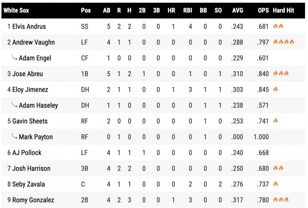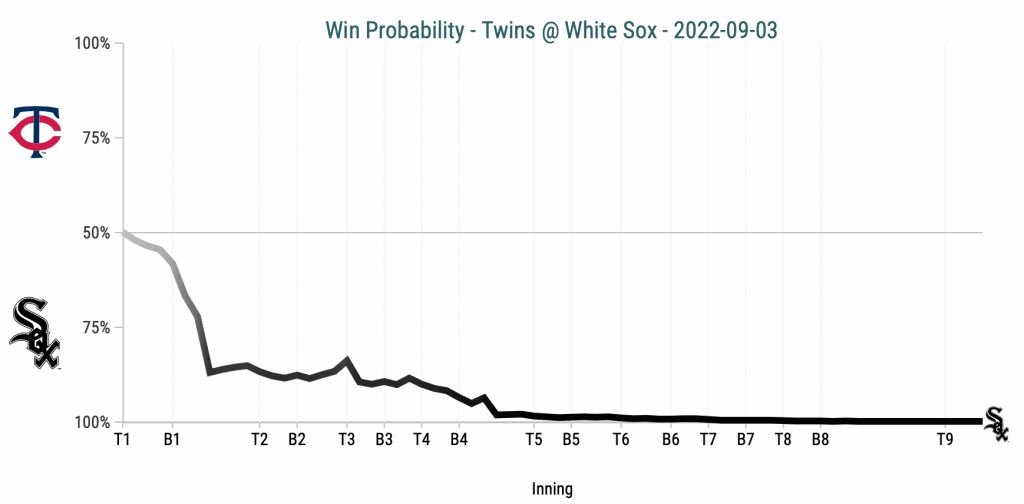 Not much more you can say about Dylan Cease other than it was a Cy Young-worthy performance. Coming one out from a no-hitter with under 100 pitches thrown is a feat not too many have accomplished. Cease will no doubt throw a no-hitter some time in his career – based on what he showed tonight, it’s a matter of “when” not “if.”