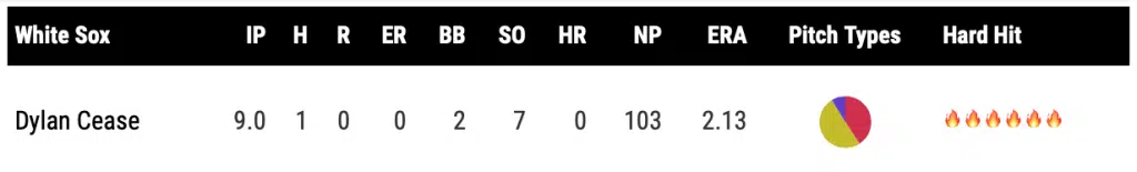 Dylan Cease: 9 IP, 1 H, 0 ER, 2 BB, 7 K