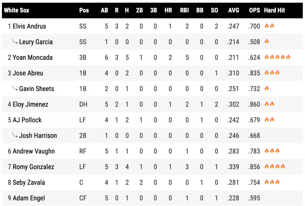 Romy Gonzalez has given the White Sox quite the predicament once Tim Anderson returns to the team. With a four-hit outing tonight, Gonzalez’s average now sits at .339, making it pretty hard to justify sending him down to AAA. He’s made quite the impression since coming up, and has even go so far as to make a case for the second base job next season.