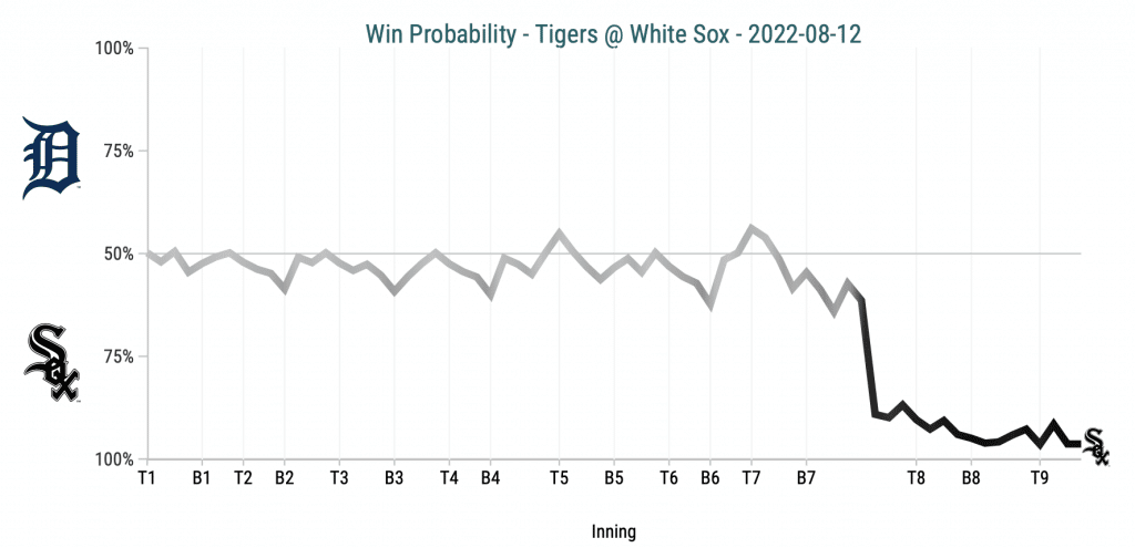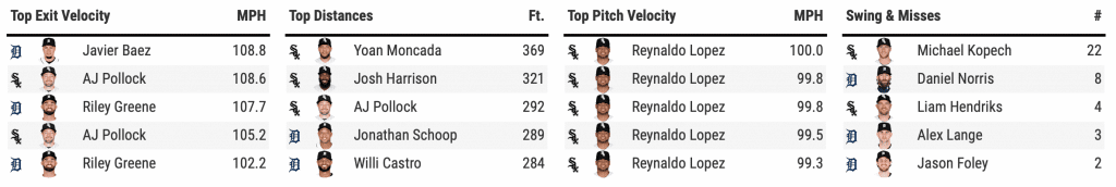 The story of the game was Michael Kopech, who looked the best he has since injuring his knee earlier this season. Through six no-hit innings, Kopech struck out 11 Tigers hitters and walked three. He exited the game with 85 pitches, with the White Sox making the decision to prioritize Kopech’s health in an innings-limited season instead of throwing him out there to continue to pitch in a game he would be unlikely to finish. Reynaldo Lopez would give up the first hit, but he, Kendall Graveman, and Liam Hendriks combined for three pretty painless innings on a great night for the White Sox staff.