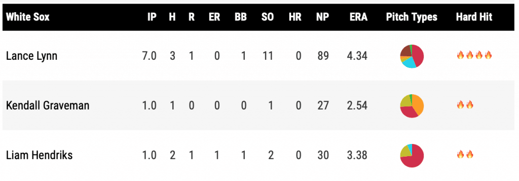With the win, the White Sox keep pace in the AL Central and pick up a game on the Twins in the meantime. They are 1.5 games back of Cleveland (pending their game later in the evening) and just one game back of Minnesota.