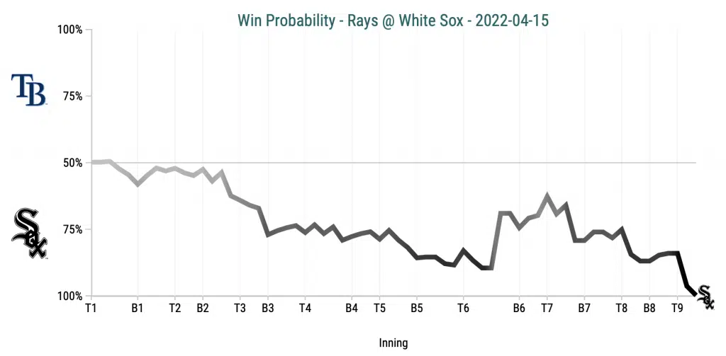 With Lucas Giolito and Lance Lynn out for the White Sox, Dylan Cease has become the de facto ace for this White Sox staff. In two performances thus far on the season, Cease has complete 10.2 innings while compiling a 1.69 ERA. He was in command early on today, working ahead of pretty much every hitter and avoiding too many deep counts. The Rays were able to get two runners on in the fourth to no avail against Cease, and he walks away with two incredibly solid starts to kick off his 2022 campaign.