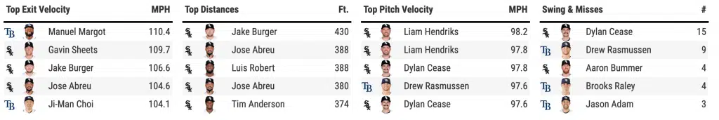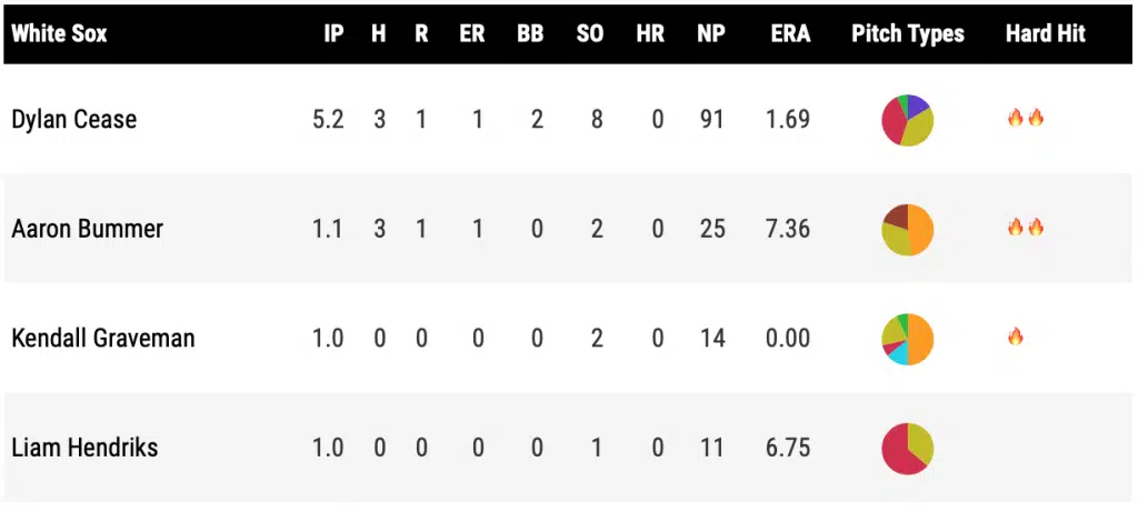 W: Dylan Cease (2-0) | L: Drew Rasmussen (0-1) | S: Liam Hendriks (3)