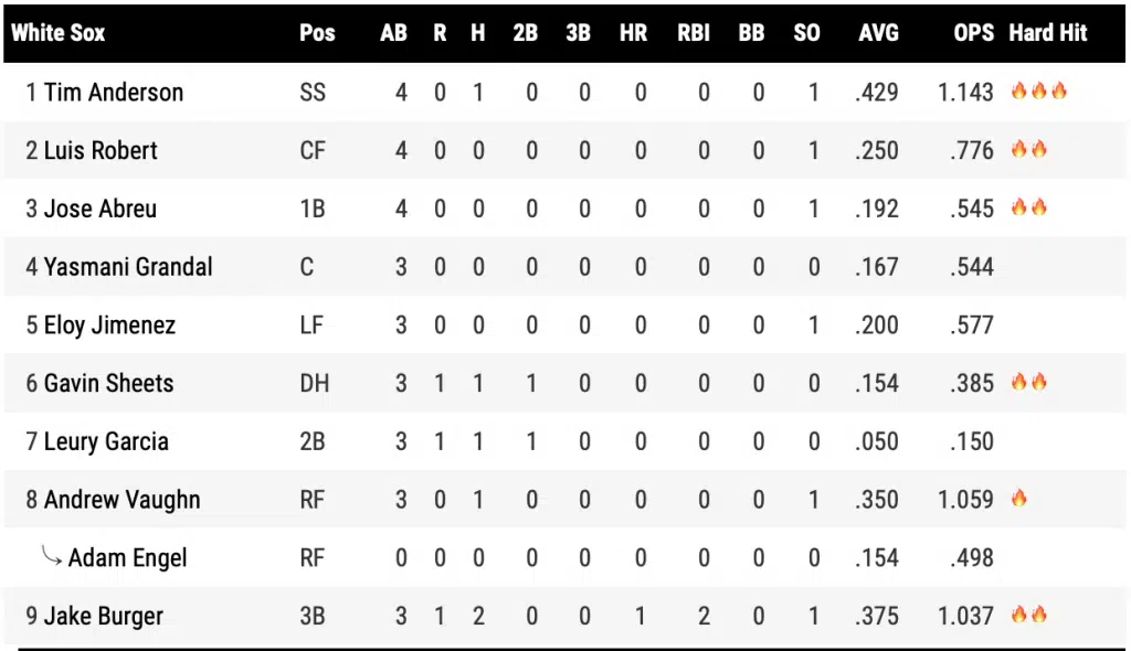 On offense, it was pretty much the Jake Burger show all night. The backup third baseman was 2-for-3 on the night, including a home run and later an RBI single that would prove to be the difference in the ballgame. The South Siders did put some good swings up against Rays’ starter Drew Rasmussen – at one point, recording three straight barreled outs – but were only able to muster three runs on the night. But, on the 75th anniversary of Jackie Robinson Day, it was enough.