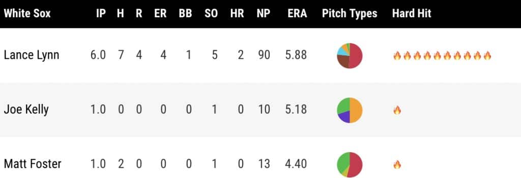 The White Sox fell in game one of the doubleheader in KC 4-2. Lance Lynn was burned by four earned runs, all of which came on home runs – a pair of two-run shots. Outside of Lynn’s six innings, Joe Kelly and Matt Foster both worked two scoreless innings in relief out of the bullpen.