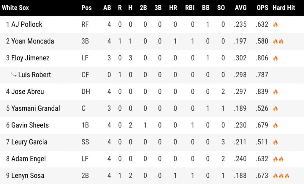 Just like in the first game, the offense was sparked with another third-inning homer, this one off the bat of Lenyn Sosa – the first homer of his big league career. Yoan Moncada also left the ballpark in the sixth, adding to the lead with his sixth homer of the year. Then in the eighth inning, Gavin Sheets provided some much-needed insurance with a double to drive in Luis Robert.