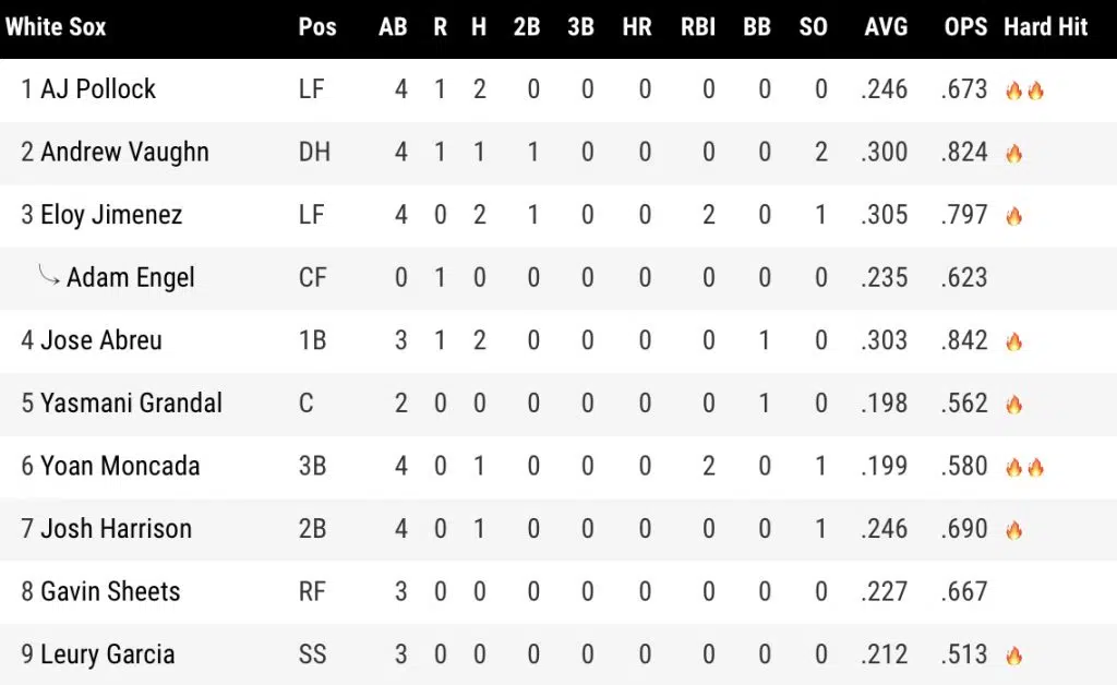 Eloy Jimenez has been a huge boost to the lineup since his return, and he delivered with another huge hit late in this one.