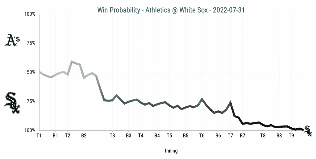 Dylan Cease got the start for the White Sox and was brilliant once again, his only blemish being a one-out homer by Ramon Laureano in the top of the second inning. From there, Cease worked around a little bit of traffic here and there, but hardly any true rally in the effort. His final line: 6 IP, 4 H, 1 ER, 1 BB, 7 K. He would leave the game with a 3-1 lead while lowering his ERA on the season to 2.01 in the process. Joe Kelly, Kendall Graveman, and Liam Hendriks would finish off the game as the team imagined when they signed each of them to contracts: scoreless and without much trouble.