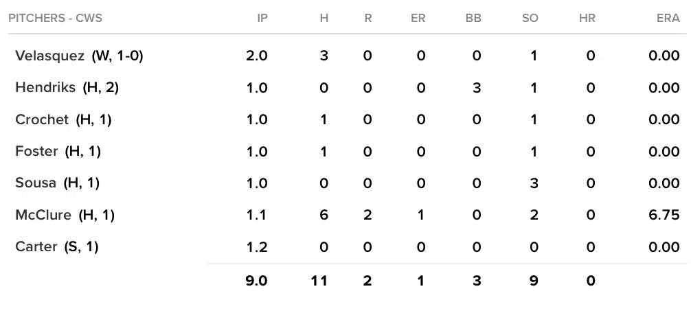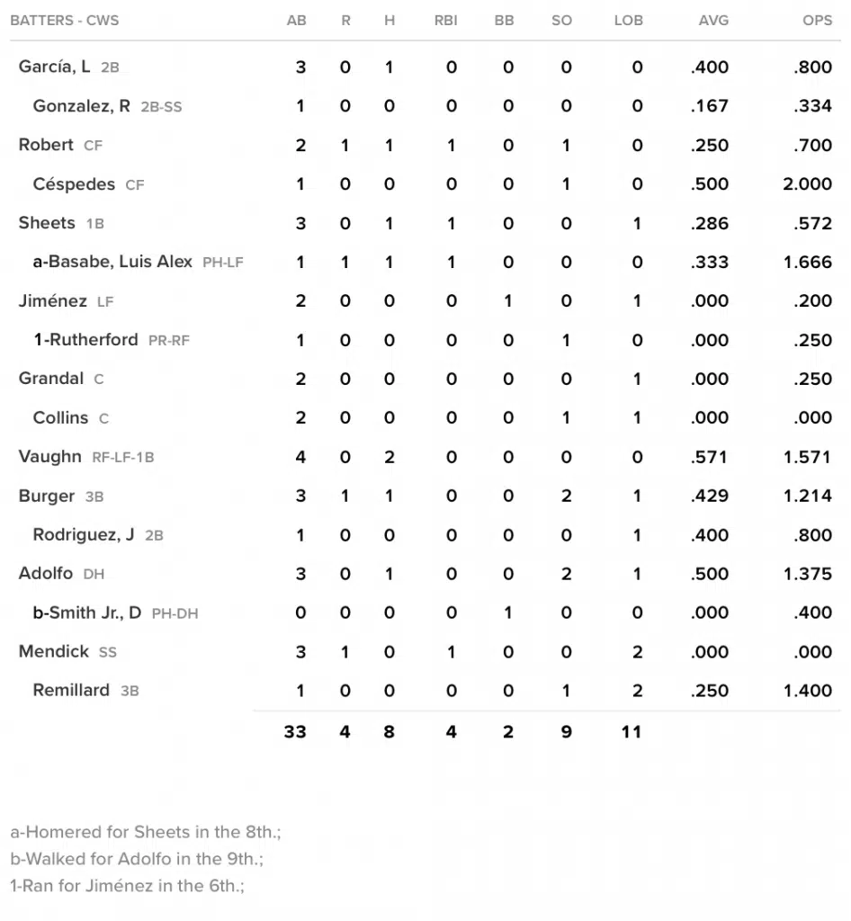 Other notable players to make an appearance today include: Leury Garcia, Yoelquis Cespedes, Romy Gonzalez, Eloy Jimenez, Yasmani Grandal, Jake Burger, Micker Adolfo, Danny Mendick, Liam Hendriks, Garret Crochet, and Matt Foster.