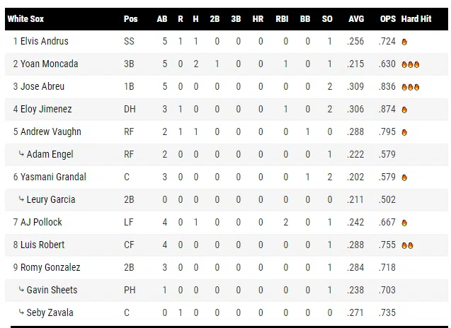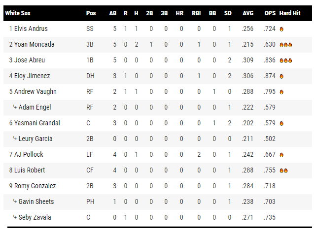 The offense did not really show up today, but it did just enough to eke out a victory. AJ Pollock hit a go-ahead single in the 7th inning which scored Eloy Jimenez and Andrew Vaughn, bringing the Sox up 2-1 at the time. The Tigers would later tie the game in the bottom of the 8th. The Sox failed to even move the runner from second to third in the top of the 10th inning, let alone score, yet Hendriks stopped the Tigers from scoring as well. A Yoan Moncada single and an Eloy Jimenez sacrifice fly in the 11th brought the Pale Hose up 4-2 after the top of the 11th. The White Sox ultimately won the game 4-3. As stated earlier, this win was not pretty, but a win is a win.