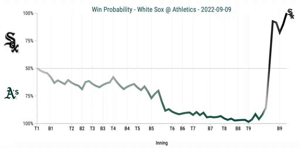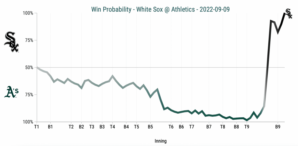 The offense left little to speak about through the first six innings, as they were held hitless on a bullpen night for the A’s that turned into a five inning outing by Austin Pruitt. Eloy Jimenez would get the White Sox’ first hit in the seventh inning, but until the ninth, the White Sox had no runs on the board and were staring a 3-0 loss in the face.