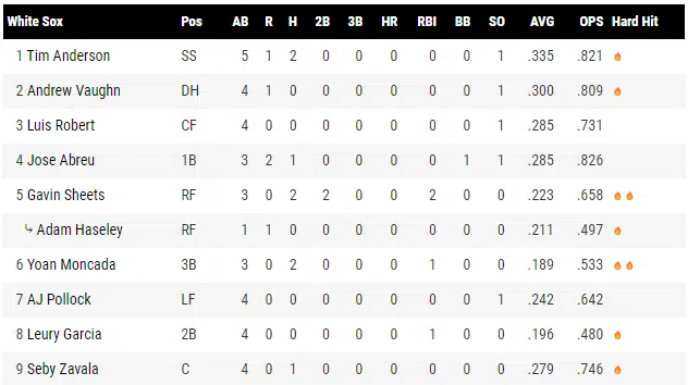 Top 4th: Gavin Sheets doubles to LF. Tim Anderson, Andrew Vaughn score. 2-1 White Sox