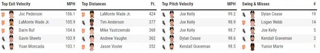 W: Dylan Cease (7-3) | L: Logan Webb (7-3) | S: Kendall Graveman (5)