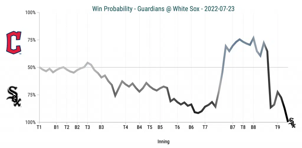 Enter Jose Ruiz in the seventh, who struggled in a high-leverage situation and gave up three runs before exiting. He would be relieved by Reynaldo Lopez, who gave up a go-ahead RBI triple to Amed Rosario to complete the turnaround for the Guardians. However, the Sox were able to mount their comeback in the bottom of the eighth, thanks to a double by Andrew Vaughn, walks by Jose Abreu and Yasmani Grandal, and a two-RBI single by AJ Pollock to put the Sox ahead for good. Matt Foster would complete the ninth, walking the leadoff hitter before getting a sac bunt, groundout, and lineout to complete a wild victory in Chicago.