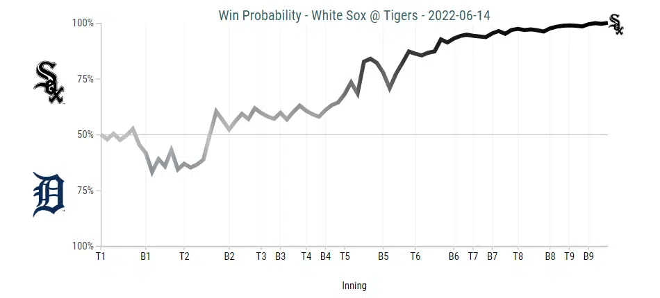 Detroit got out to an early 1-0 lead in the first inning, but that was the only lead they would hold and the only run they would score in the evening. Dylan Cease needed a hefty 108 pitches (71 strikes) to get through five frames, but battled hard and relied on his sharp off-speed pitches to keep the Tigers at bay. He struck out eight, scattering seven hits, a walk, and an unearned run along the way to securing his fifth victory of the season.
