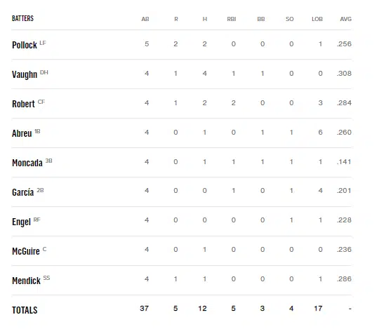 White Sox Scoring Recap: