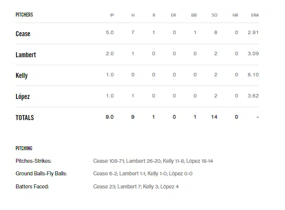 Although his early fastball command was shaky, Dylan was able to escape a few jams and hold Detroit to the lone unearned run. His nasty stuff was once again on display, as he struck out eight, generated 15 swings and misses, and lowered his season ERA to 2.91 in the process. Efficiency remains the only question mark in what has otherwise been an outstanding season to date for Cease.