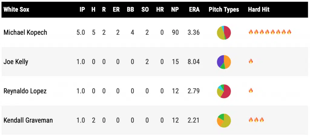 Michael Kopech: 5 IP, 5 H, 2 ER, 4 BB, 2 K