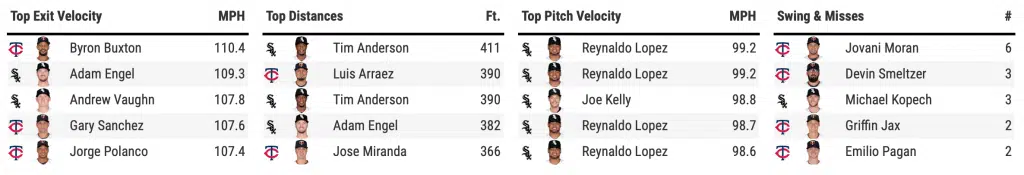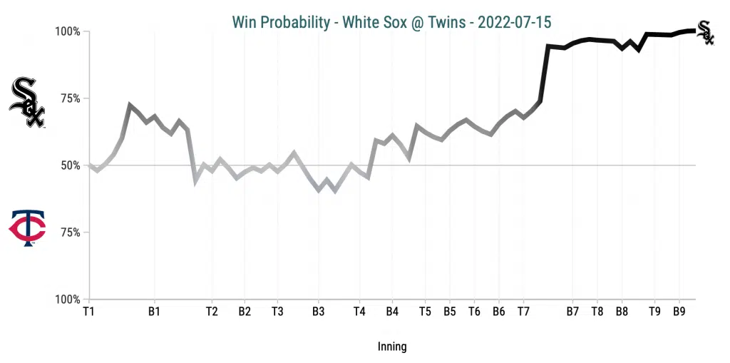 Michael Kopech got the start for the White Sox in today’s game and battled his command throughout the night. He saw a return to his 95-97 mph that had gone missing over the last month of starts. While he did walk four in the game and struggled with swings-and misses, outside of a two-run double by Alex Kirilloff in the first inning, he was able to keep the Twins off the board through five innings. He was followed by scoreless outings by Joe Kelly, Reynaldo Lopez, Kendall Graveman, and Liam Hendriks. The biggest threat from the Twins came against Kendall Graveman in the eighth, but a double play off the bat of Alex Kirilloff ended the rally before it could get anywhere.