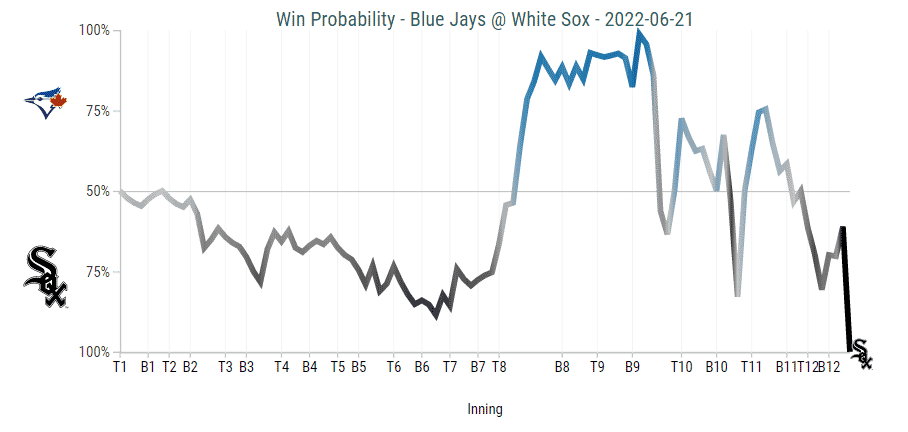 Bottom of the 12th: Josh Harrison singles to shallow center field. José Abreu scores. CWS 7- TOR 6.