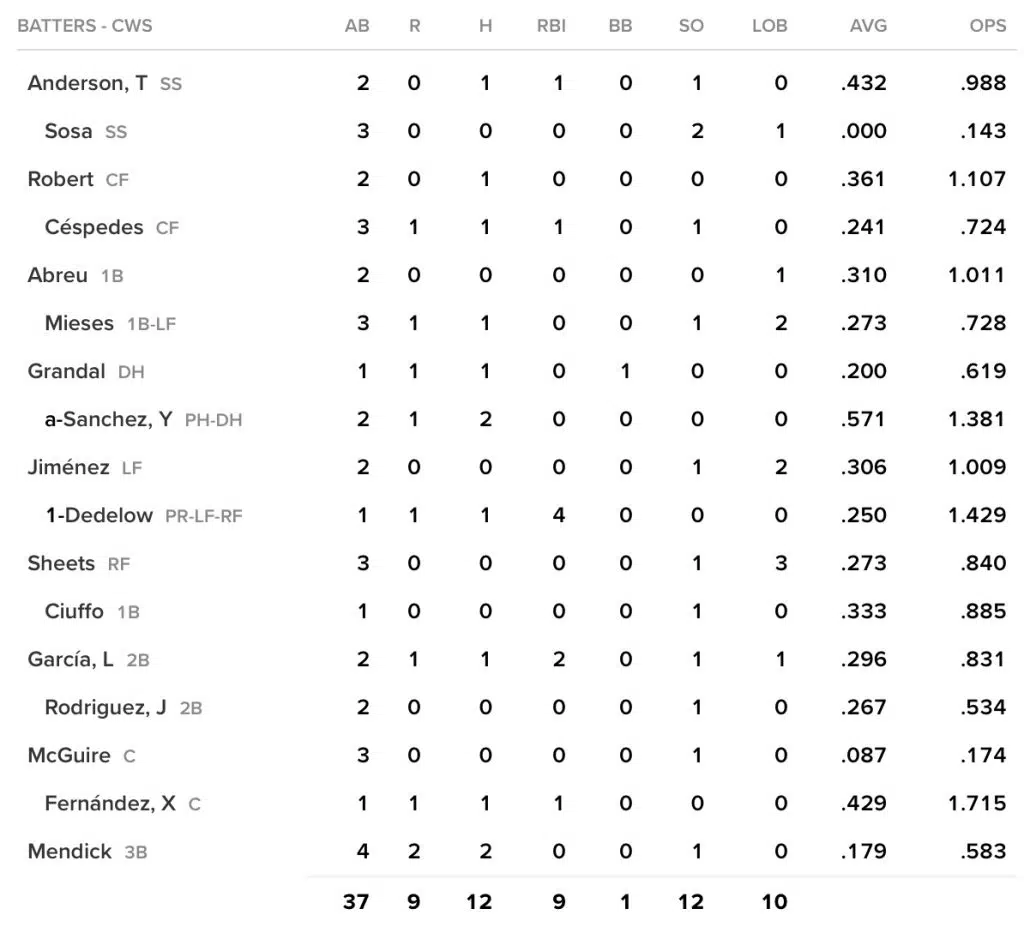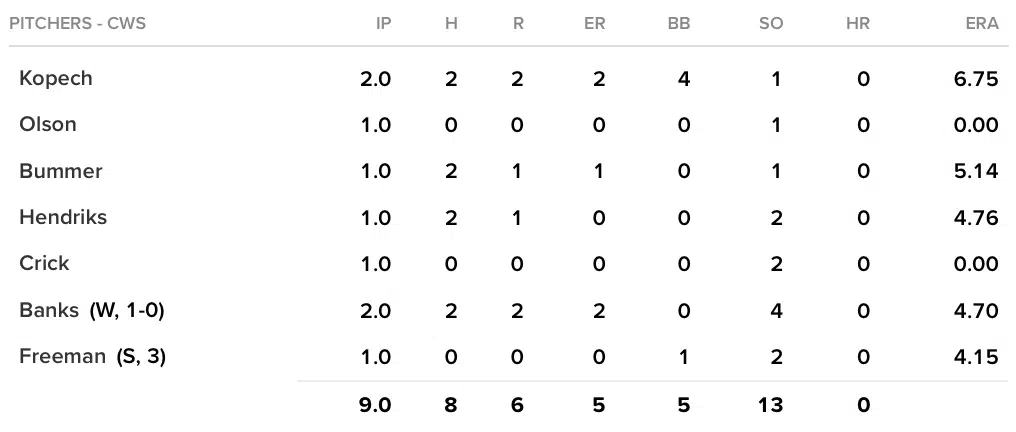 The offense showed up once again today for the Sox, who tallied 9 runs. The White Sox newest addition, catcher Reese McGuire, was in the lineup today – he went 0-for-3 in his debut with the club. Leury Garcia went 1-for-2 on day with a homer. Yasmani Grandal went 1-for-1 with a walk and a run scored. Infielder Yolbert Sanchez went 2-for-2 on the day with 1 run scored. Yoelui Cespedes recorded an RBI in the game today, while Xavier Fernandez and Craig Dedelow both homered.