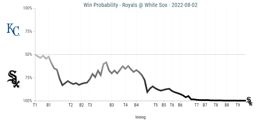 José Abreu homers to left field. Andrew Vaughn scores. CWS 8- KC 2.