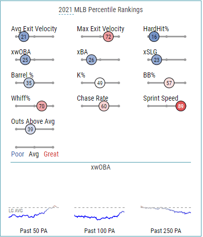 | 2021 | Sept/Oct | 8.2% | 16.4% | 0.50 | .254 | .315 | .284 | .599 | .030 | .309 | 6 | -2.6 | .271 | 71 |