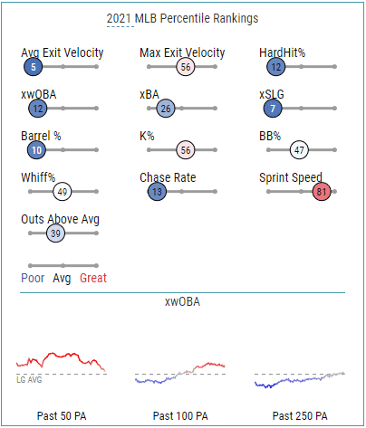 | 2021 | Sept/Oct | 4.0% | 10.7% | 0.38 | .353 | .384 | .515 | .898 | .162 | .373 | 13 | 4.3 | .383 | 146 |
