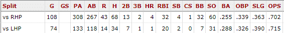 Still can’t pick? Yeah me neither. Both aren’t great options. Even with the LHP v RHP splits neither hits one hits either pitcher better so we can’t have a platoon at 2nd base. But hey! At least they’re both in the 80th percentile for sprint speed!