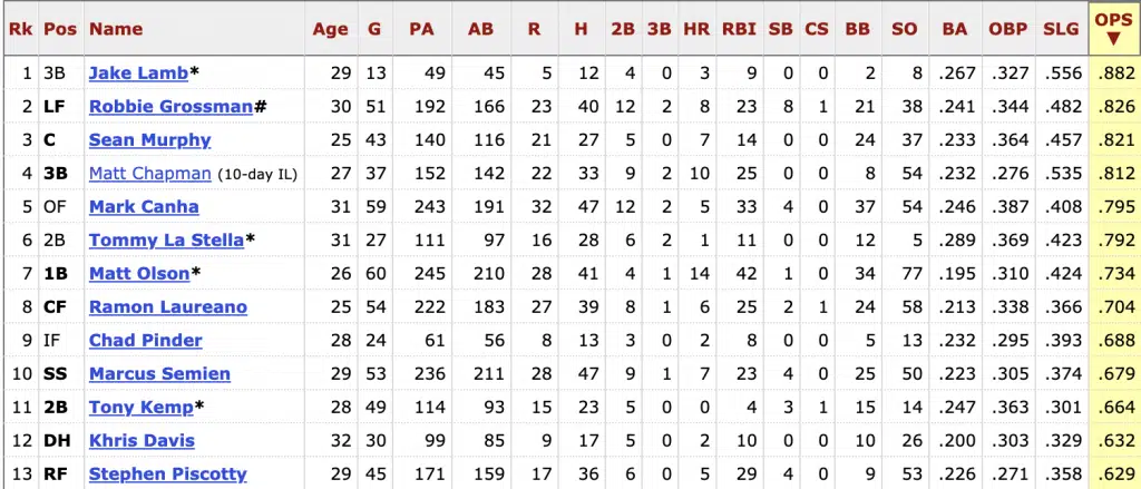 Here’s how the Athletics stack up, courtesy of Baseball Reference: